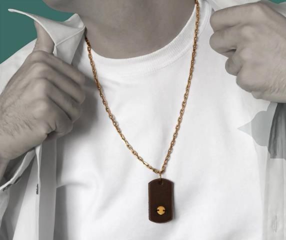 (Art.nr. MG08) Einzigartige Echt-Leder Herren-Kette mit 18K Gold Element (ohne Kette) ...