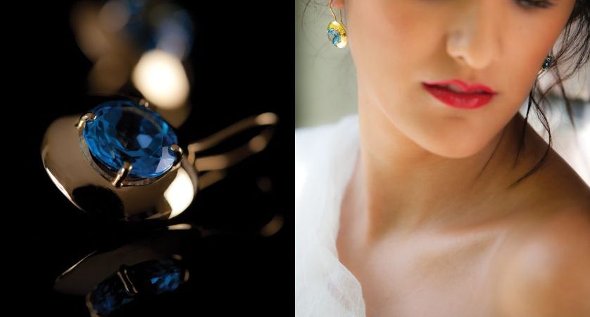 Gold-Ohrringe, blaue Topase