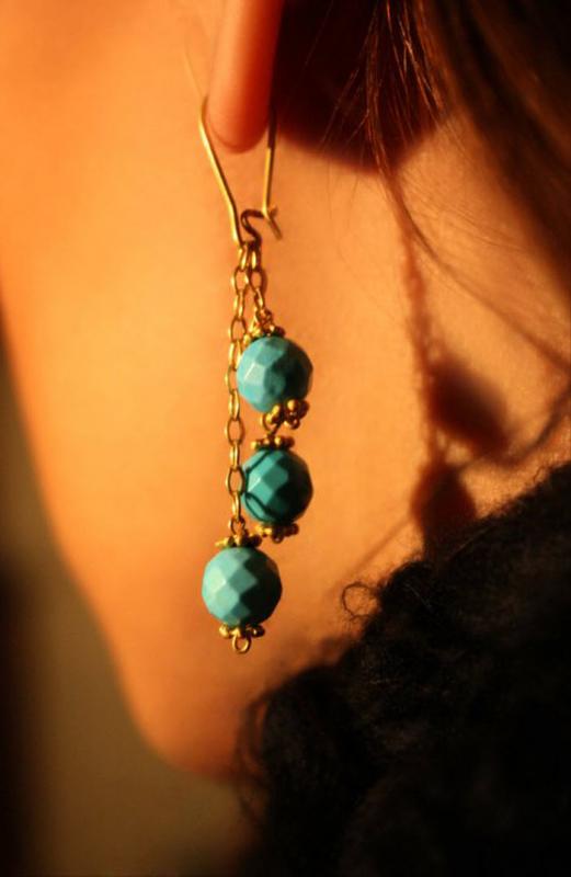 (GE-06) Ohrringe mit Türkis Anhänger in 18K Gold ...