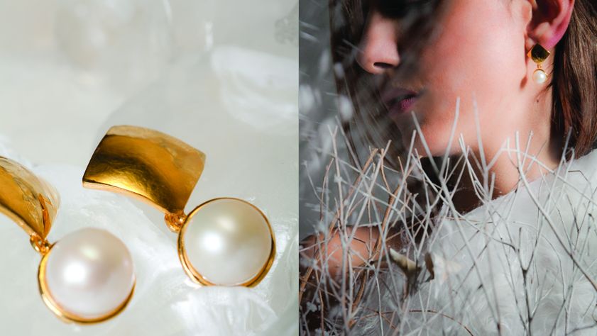 (GE-08) Ohrstecker aus 18K Gold mit handgearbeiteter Süßwasserzuchtperle ...