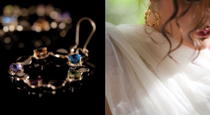 Ohrringe mit Türkis, Citrin, Amethyst und Grüner Topas in 18K Gold (GE-01)...
