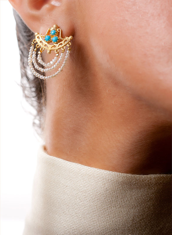 Ohrringe mit Perlen und Türkis in 18K Gold(GE-21) ...