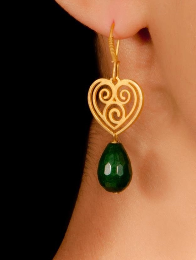 (GE-38) Ohrringe mit Jade Anhänger in 18K Gold ...