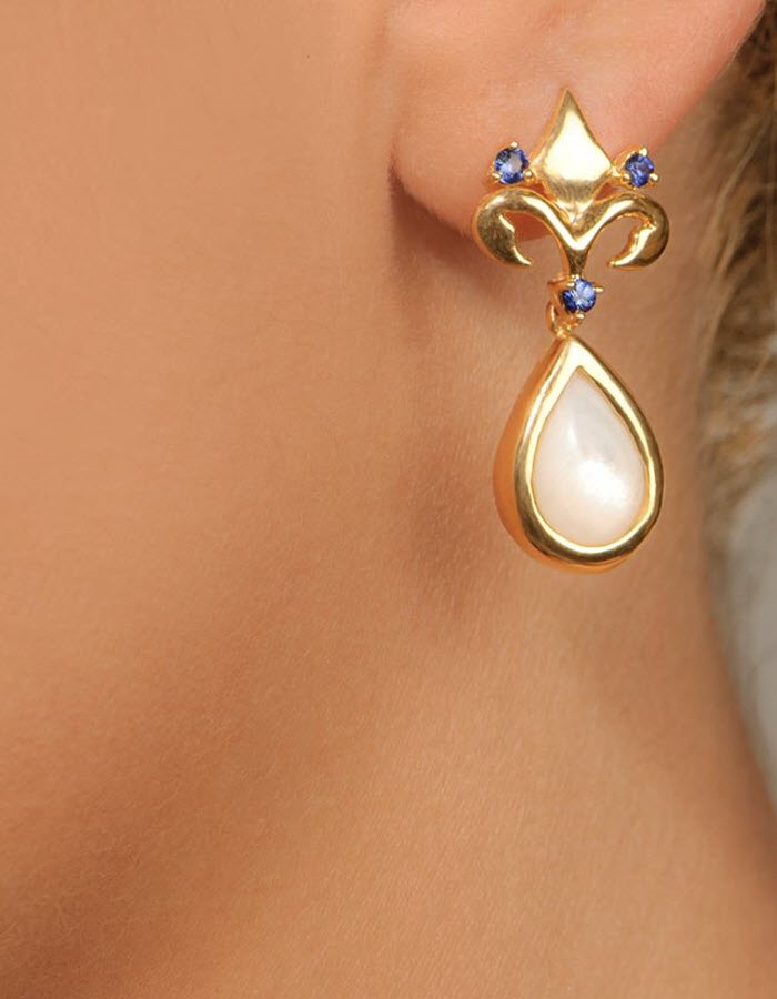 Ohrringe mit Perlen und Saphir in 18K Gold(GE-39) ...