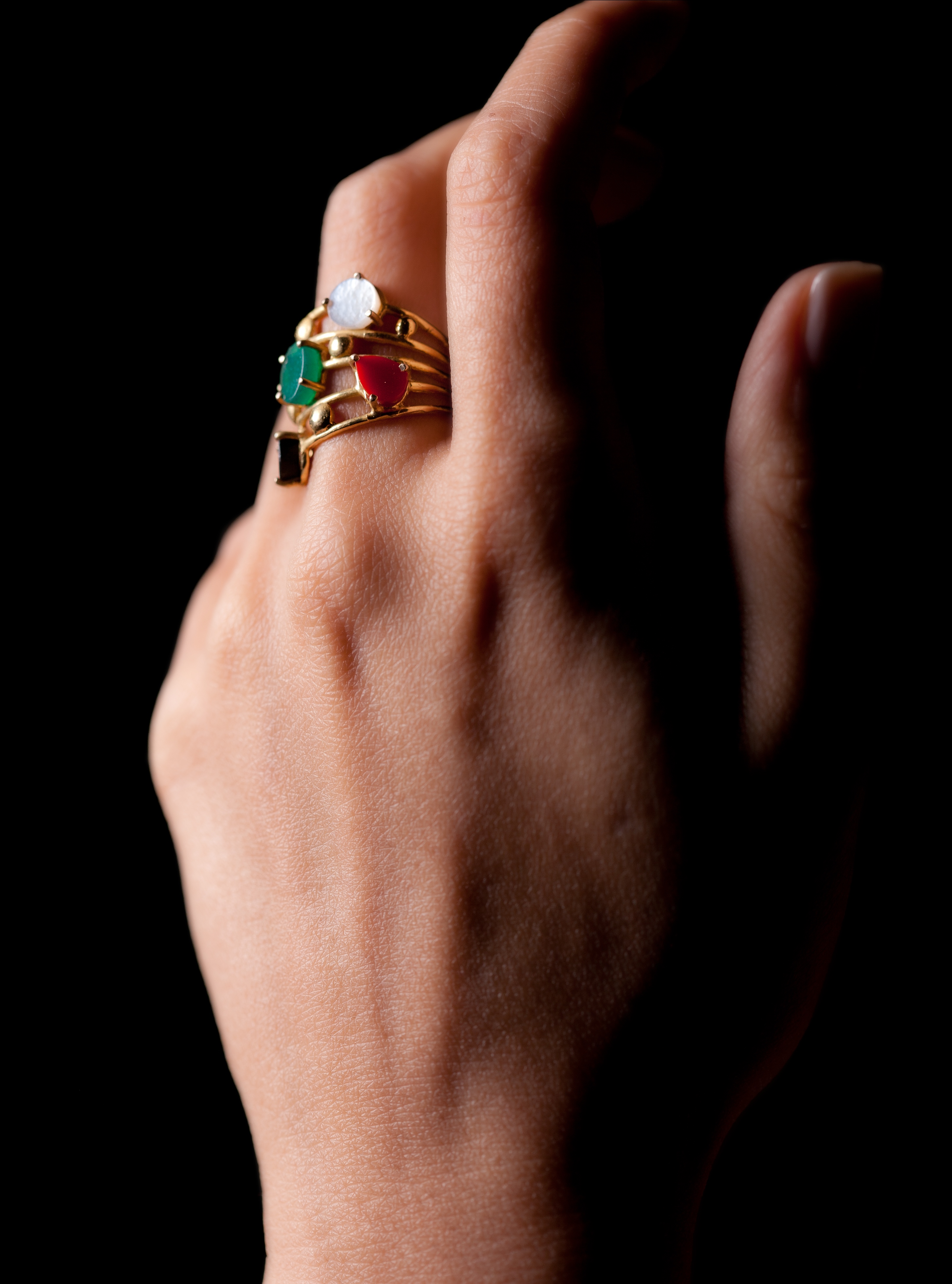 Sämtliche Ringe unserer Kollektion werden aus 18-karätigem Gold gefertigt und mit Edelsteinen oder Halbedelsteinen besetzt. Selbstverständlich können alle Schuckstücke ganz individuell mit Steinen Ihrer Wahl versehen werden.-