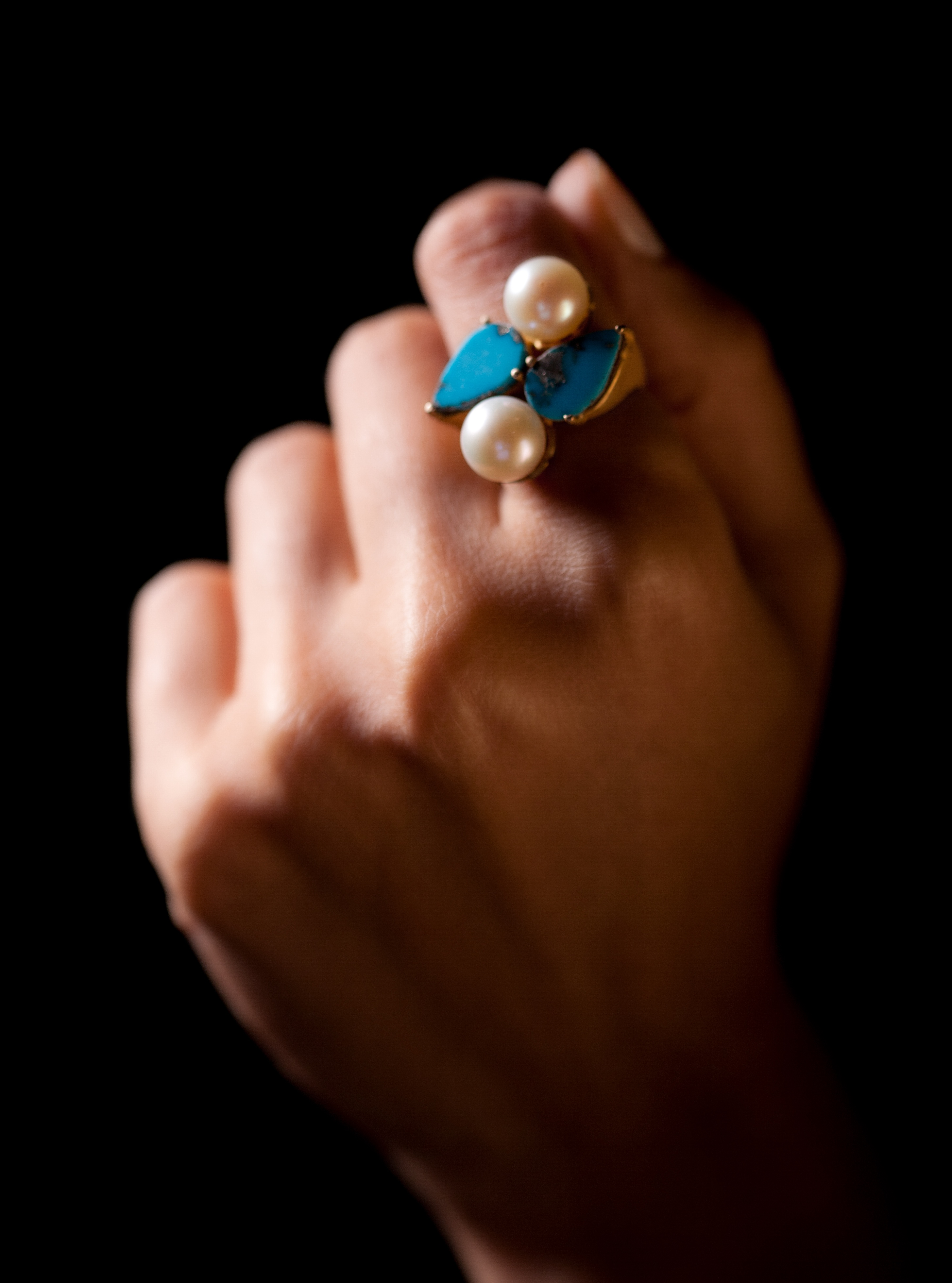 Ring, 18K Gold, Türkis, Perlen