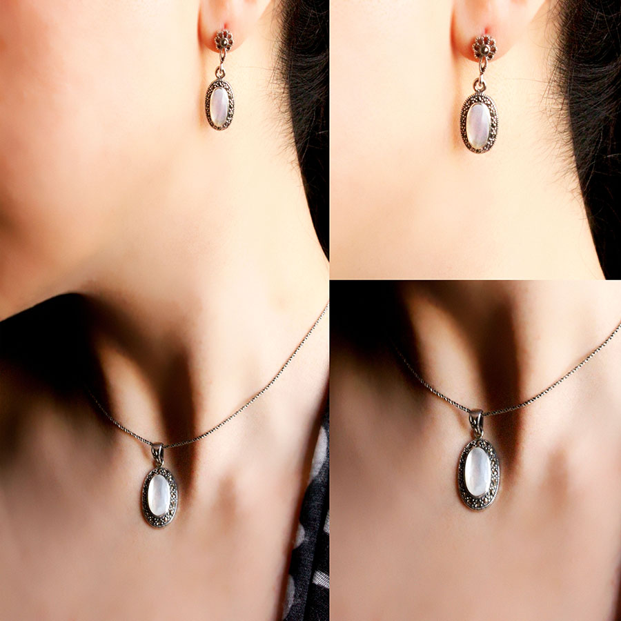 (SN-01) 925 Sterling Silber Kette mit Mondstein €199,00, Sterling Silber Ohrringe mit Mondstein ...